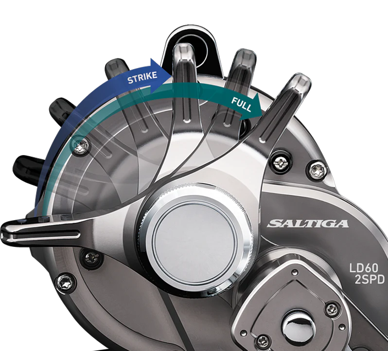 Saltiga LD has had improvements in all areas of the reel, addressing areas of concern that top anglers identified with lever drag reels of the past. A drag cam design that is smooth and capable of handling both braid and monofilament lines is one of the obvious improvements. The lever itself has been totally redesigned to allow finite and precise drag control even at very low settings, a feature loved by livebait anglers especially. 20 Saltiga LD was designed to be beautifully simple, and incredibly strong. Available in single- and two-speed designs from size 10-60.