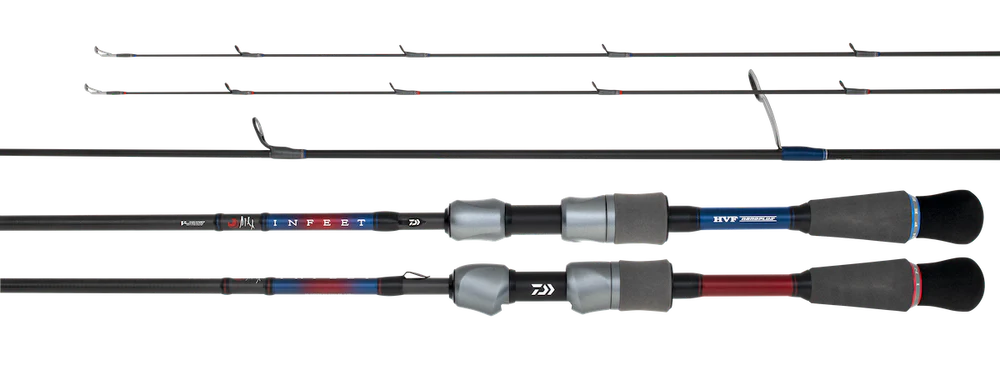 HVF Nanoplus graphite has been combined with X45X Full Shield technology to eliminate blank twist which results in rods which cast insanely well for their size and feel crisp and responsive when casting or working lures. As with all INFEET rods, a distinct red and blue colourway is used to designate the action of the rods, with fast action rods boasting red highlights while moderate or regular action rods are adorned with blue. For INFEET SK, there is two of each model available in both light and ultralight actions to cover the gamut of light-tackle techniques.