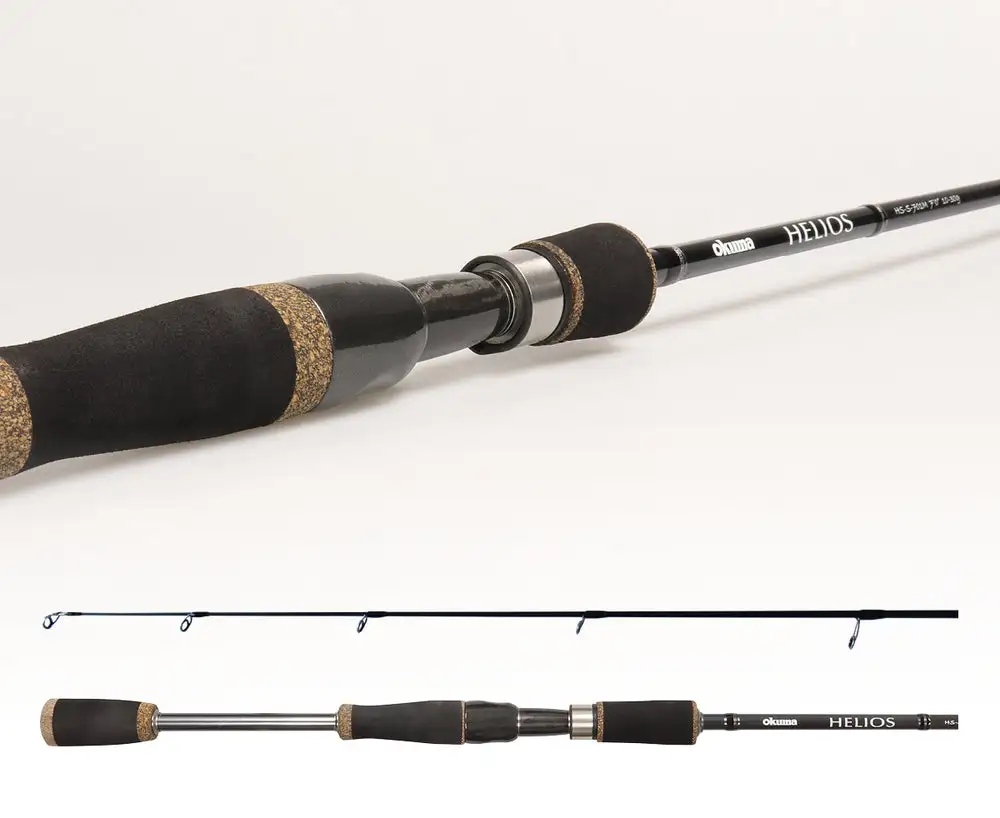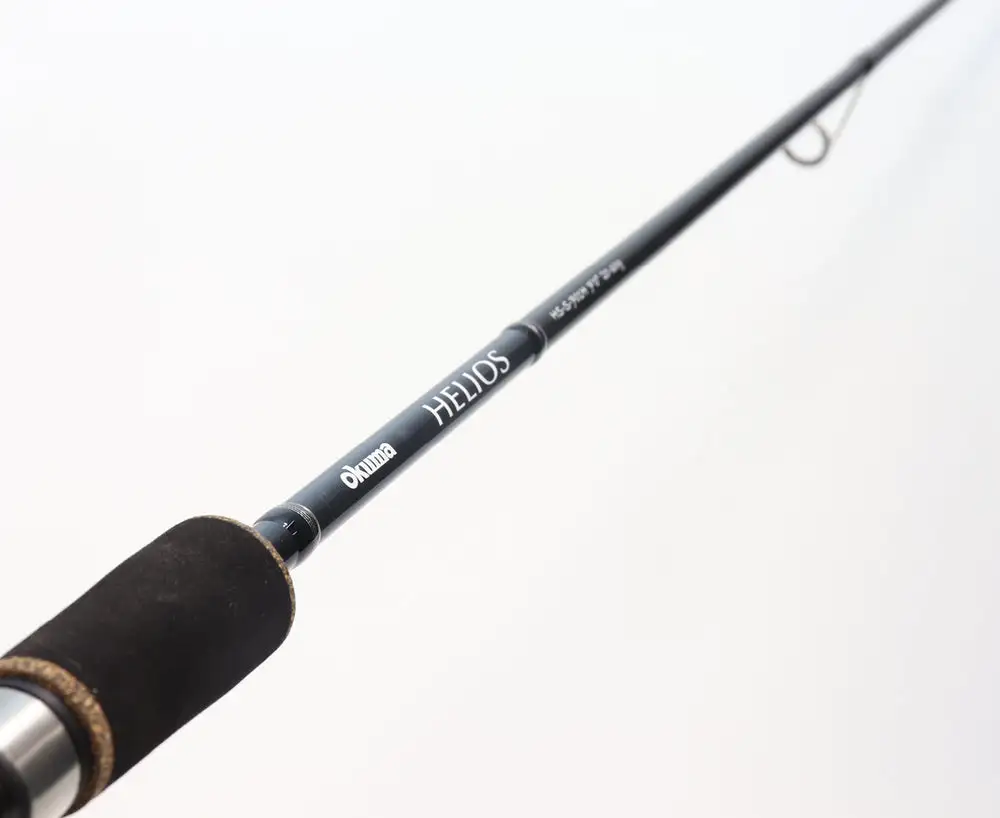 The Okuma Helios spin range are ideal for the tournament angler and serious social fisho alike, making long accurate casts, lure control and bite detection a breeze, while also boasting plenty of stopping power in the butt section. Features include quality Fuji guides and comfort grip reel seat, premium quality Toray carbon blank, split butt design for reduced weight and balance, and hard EVA and rubber cork grips for style and durability.