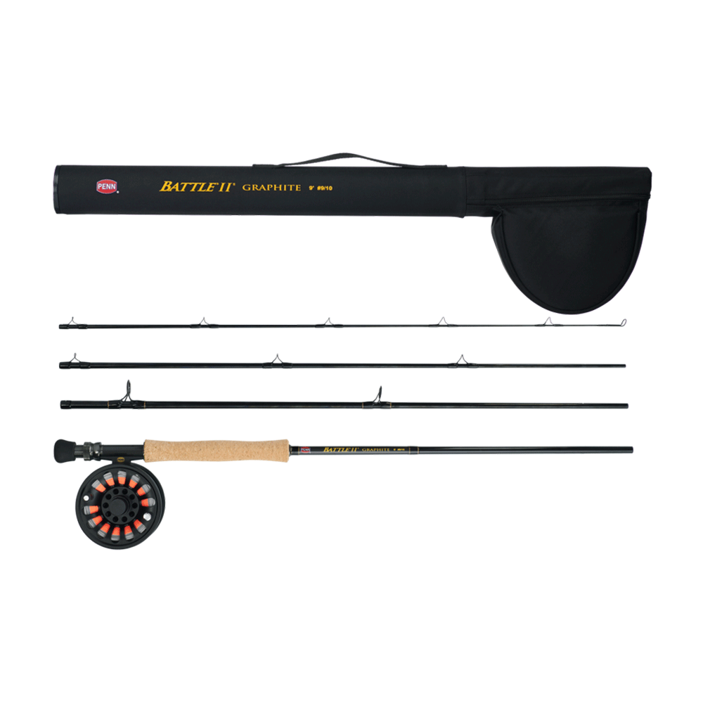 High quality fly combos aimed at the avid saltwater fly angler, this rod, reel, and line combo comes pre-spooled with braided backing, pre-looped floating fly line and tapered saltwater leader and is supplied in a handy travel case. Featuring a fully adjustable disc drag and a die cast anodized frame, the Battle II fly reel is perfectly paired for saltwater performance with the anodized aluminium reel set and medium fast action four piece Battle II fly rod.