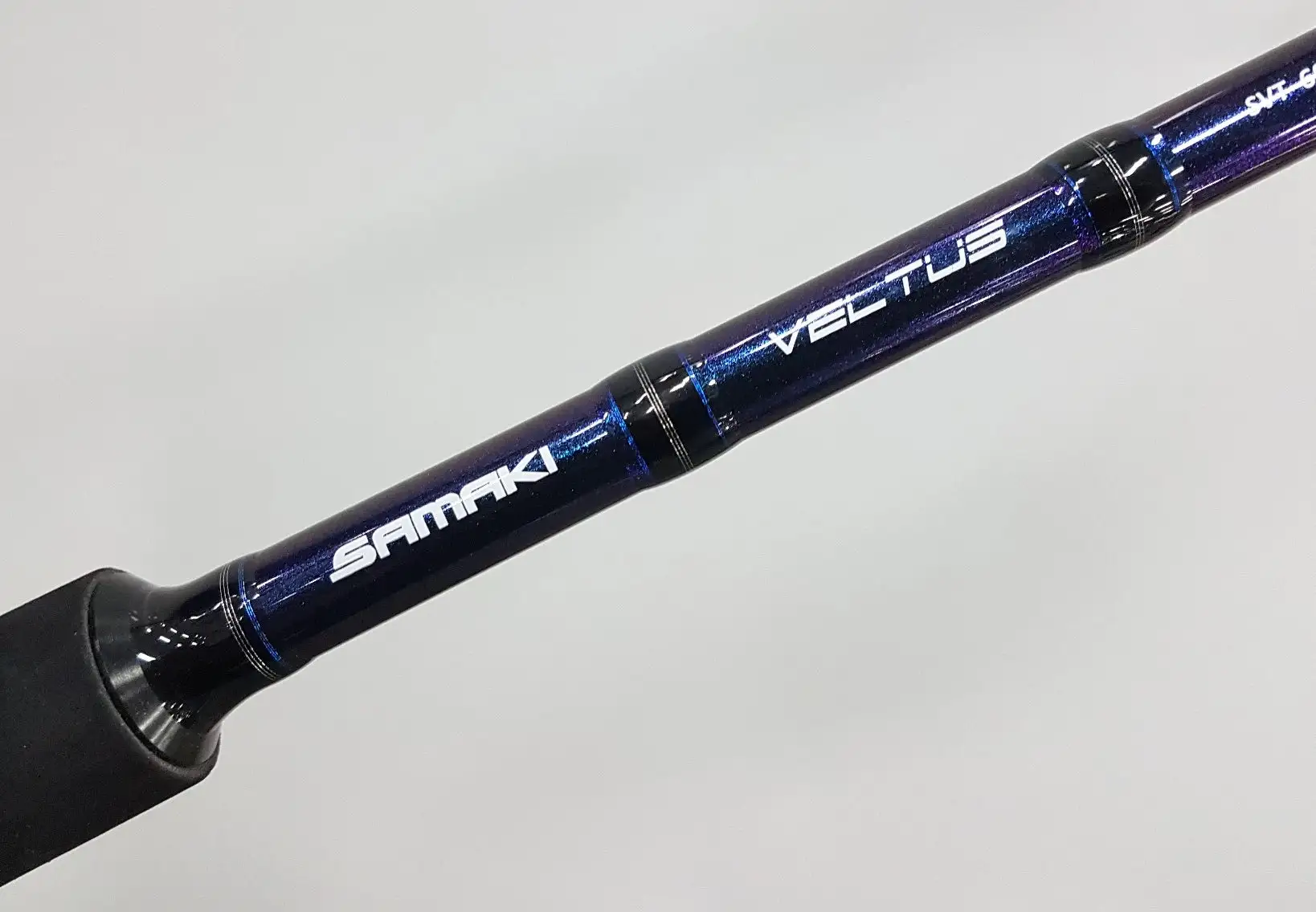 Samaki Veltus rods exist from a blend of uni directional e-glass in the top and carbon fibre in the butt offering a lighter yet powerful series making this saltwater rod a weapon on the boat.