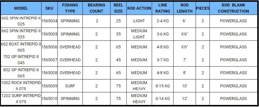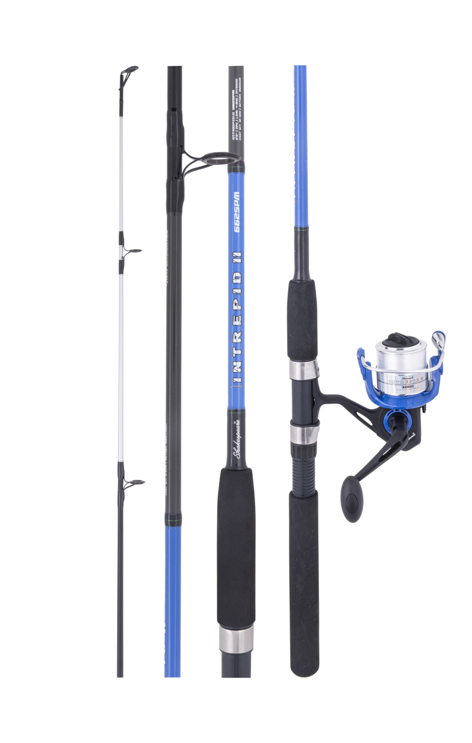 The Shakespeare Intrepid combos range features Powerglass blank construction, and a 2 bearing reel with aluminium spool, pre-spooled with quality mono line.